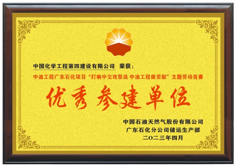 近日,由華北公司承建的廣東揭陽石化包裝廠房項目喜訊連連,先后收到業(yè)主單位中國石油天然氣股份有限公司廣東石化分公司發(fā)來的“感謝信”和廣東石化分公司儲運生產部授予公司的“優(yōu)秀參建單位”榮譽獎牌。