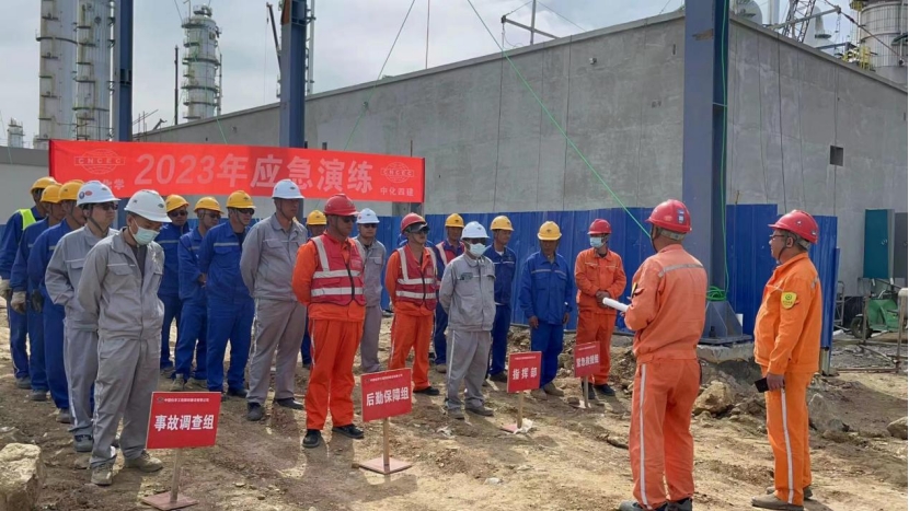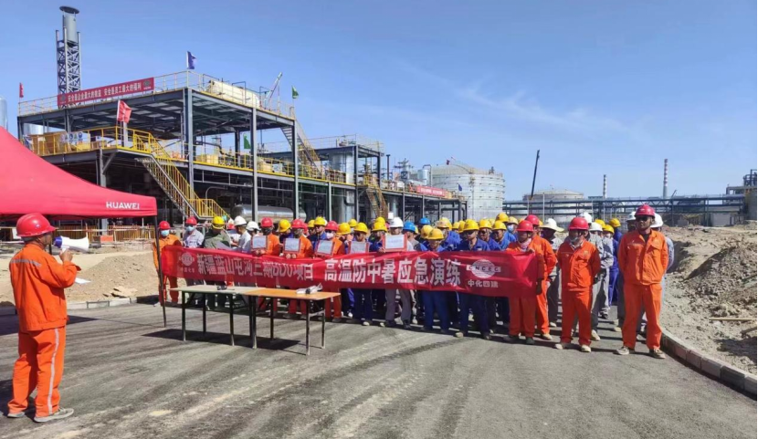 近日,中化勞務(wù)公司山東裕龍石化項目部組織開展夏季防中暑應(yīng)急演練。