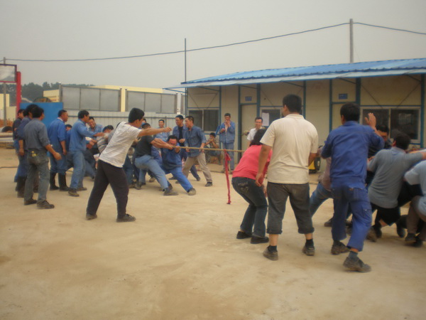 比賽在項目部辦公區(qū)內的空地上進行,共有管工班、鉗工班、電工班、綜合隊等四支隊伍參賽。參賽隊員斗志昂揚,情緒飽滿,如同臨陣的戰(zhàn)士。隨著裁判的一聲哨響,拔河比賽正式拉開了帷幕。一時間,人聲鼎沸,吶喊聲、助威聲隨著比賽有節(jié)奏的此起彼伏,雙方的參賽隊員均使出渾身解數、相互配合,心往一處想,勁往一處使,全身心投入到比賽中。經過激烈的角逐,在“友誼第一、比賽第二”的熱烈氣氛下,最終鉗工班奪得了桂冠。