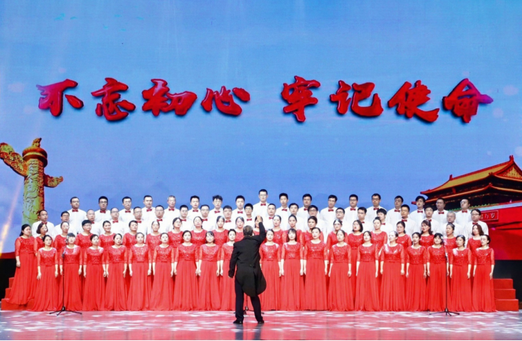公司機(jī)關(guān)員工表演的大合唱《不忘初心》在眾首翹盼中閃亮登臺(tái)。公司員工引吭高歌,謳歌了公司70周年無論走過千山萬水、穿越雨雪風(fēng)霜始終初心如磐、使命如炬。前半段曲調(diào)委婉動(dòng)聽,引人入勝,后半段轉(zhuǎn)向激昂,音符仿佛山洪噴涌一瀉千里,現(xiàn)場(chǎng)的氣氛瞬間被點(diǎn)燃,鏗鏘有力的合唱聲從臺(tái)上傳來,帶動(dòng)場(chǎng)下的觀眾沉浸其中,紛紛拿出手機(jī)記錄下這一刻。