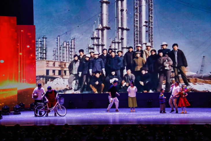 港晨公司傾情演繹的舞臺(tái)劇《追光·建未來》再現(xiàn)了四化建人在70年征程中,為國家建設(shè)夜以繼日奮斗的動(dòng)人場(chǎng)景,演繹了化建人鳳凰涅槃、浴火重生的宏圖壯志,歌頌了建設(shè)者們向著美好生活踔厲奮發(fā)的豪邁氣概。