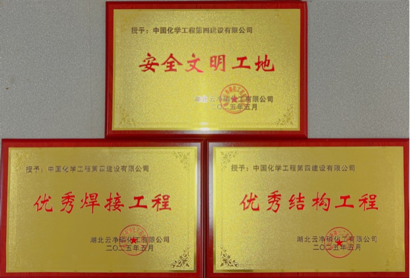近日,由中南公司承建的湖北云凈磷化工有限公司40萬噸/年濕法凈化磷酸項(xiàng)目一期工程收到業(yè)主頒發(fā)的“安全文明工地”“優(yōu)秀焊接工程”“優(yōu)秀結(jié)構(gòu)工程”三塊獎牌及感謝信,業(yè)主高度贊揚(yáng)項(xiàng)目團(tuán)隊(duì)展現(xiàn)出的卓越專業(yè)素養(yǎng)、頑強(qiáng)攻堅(jiān)精神與強(qiáng)烈責(zé)任擔(dān)當(dāng)。