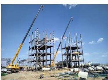 針對項目工期緊,任務(wù)量大,施工條件艱苦(缺水、風(fēng)沙較大)等情況,為保證施工的進度、質(zhì)量、安全和效益,該項目部從勞動力投入、材料和機具設(shè)備的配置及夜間趕工等方面作了詳細計劃和部署。在保證施工質(zhì)量和安全的前提下,夜間施工安排電工跟班,隨時排除現(xiàn)場電力故障,合理安排夜間施工工序和作業(yè)內(nèi)容。現(xiàn)場人員發(fā)揚“五加二”、“白加黑”的苦干精神,采取加班延點或倒班制,想方設(shè)法加快施工進度。由于現(xiàn)階段該設(shè)備安裝主要為拆遷后的材料及設(shè)備,現(xiàn)場急需對其進行分類組裝。施工班組利用晚上加班對拆遷的材料和設(shè)備進行分類,白天照樣進行吊裝焊接作業(yè),既保證了施工進度,又確保了焊接質(zhì)量,獲得了業(yè)主的認(rèn)可及贊許,為分公司承建寧夏得中化學(xué)二期頗大的施工項目創(chuàng)造了有利條件。(圖為2-甲基吡啶裝置儲罐吊裝作業(yè)。)