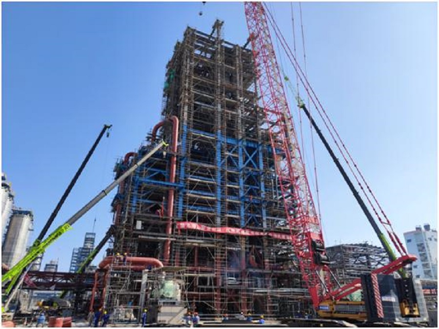 10月31日,由中南分公司承建的寧波項目裝置主反應框架順利封頂。