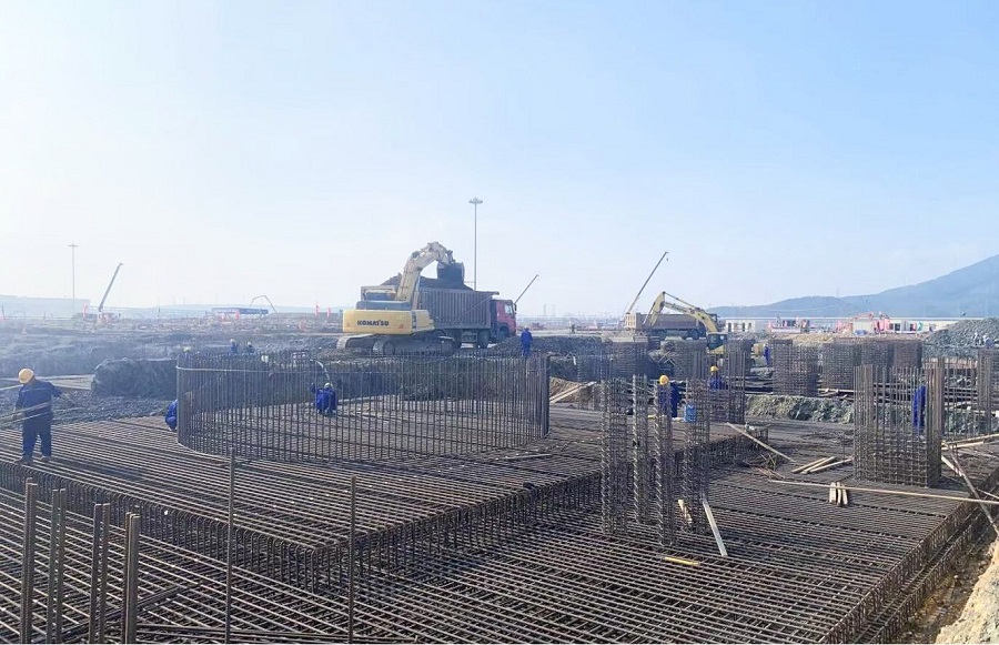 該裝置項目共有7個單元,自8月15日開工以來,項目部克服工期時間緊、地質巖石多、施工現場點多面廣、疫情防控等諸多困難,全力搶抓進度截至目前,初期雨水池池壁鋼筋已綁扎完成,氧化提濃單元核心設備基礎承臺澆筑完成,精餾單元各框架基礎陸續施工,異丙苯單元大面積開挖,裝置變電所基礎柱、梁混凝土澆筑完成。項目將充分利用好當前晴好天氣,合理組織班組施工作業,全力加快施工進度,確保完成各項既定任務,為黨的二十大勝利召開獻禮。