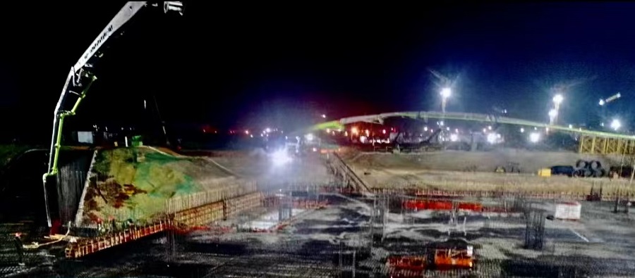 近日凌晨,由港晨公司承建的岳陽自貿(mào)片區(qū)EOD數(shù)字經(jīng)濟(jì)產(chǎn)業(yè)綜合體建設(shè)項(xiàng)目D地塊D1和D4主樓基礎(chǔ)筏板及地下室基礎(chǔ)承臺混凝土澆筑圓滿收官。