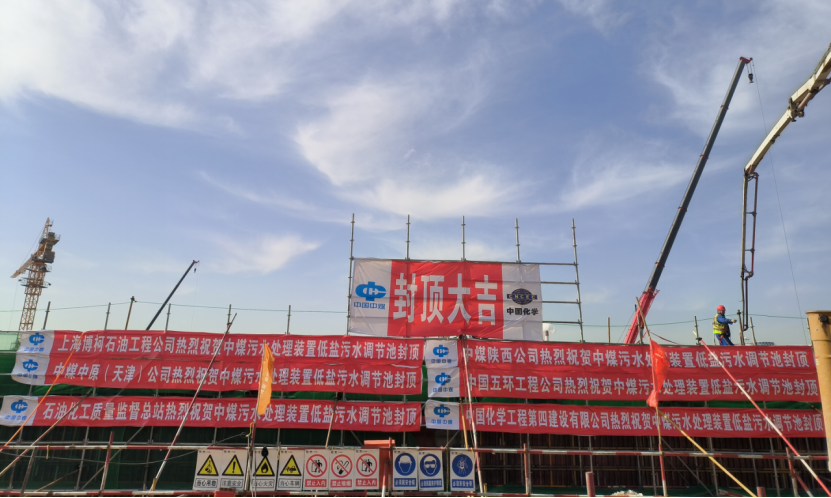 建筑工程公司中煤榆林項目低鹽污水調節池主體封頂
