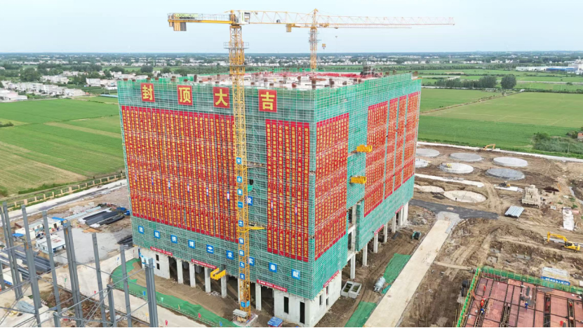 該聚合廠房主體7層局部9層,建筑高度65.7米,框架剪力墻結(jié)構(gòu),占地面積4085.64㎡,建筑面積30693.09㎡。自2024年12月12日基礎(chǔ)動土開挖以來,項(xiàng)目部采用標(biāo)準(zhǔn)化作業(yè)與先進(jìn)工藝技術(shù),克服高支模危大工程等施工難點(diǎn),以“11.5天/層”的施工速度推進(jìn)建設(shè),最終提前4天完成封頂任務(wù),刷新同類化工廠房建設(shè)效率紀(jì)錄,獲業(yè)主方高度認(rèn)可。